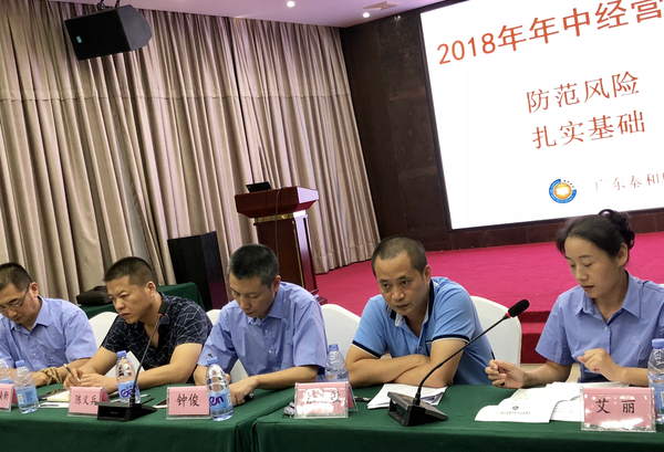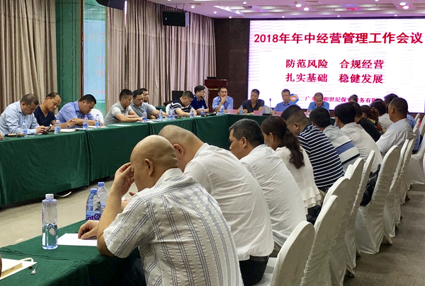 广东泰和世纪保安公司召开2018上半年经营管理工作会议发表时间:2018-08-01 11:53 防范风险,合规经营,扎实基础,稳健发展 --广东泰和世纪保安公司召开2018上半年经营管理工作会议 7月29日下午,公司在圣缇湾酒店召开2018年上半年经营管理工作会议,会议对上半年保安服务工作进行了总结,同时部署了下半年的工作,进一步明确了工作思路、经营目标和方向。公司全体管理人员和工作人员参加了此次会议,会议由总经理助理、副总经理张志敏主持。